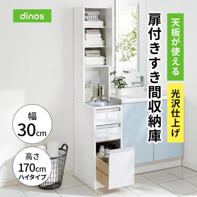 洗面所 収納 隙間収納 隙間家具 30cm ランドリー 天板が使える 光沢仕上げ扉付きすき間収納庫 ハイタイプ・幅30cm 洗面所収納 631025