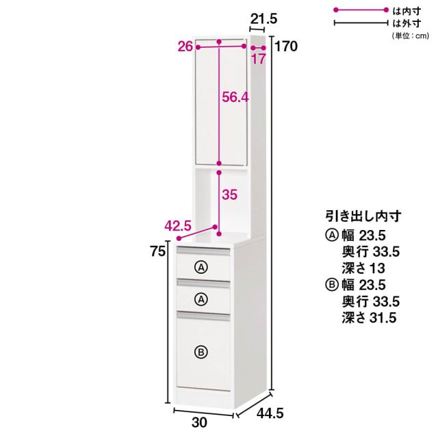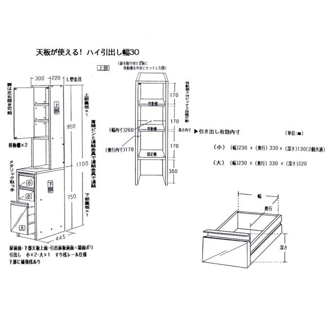 ■幅30奥行44.5高さ170引き出し奥行33.5cm・重量約27kg