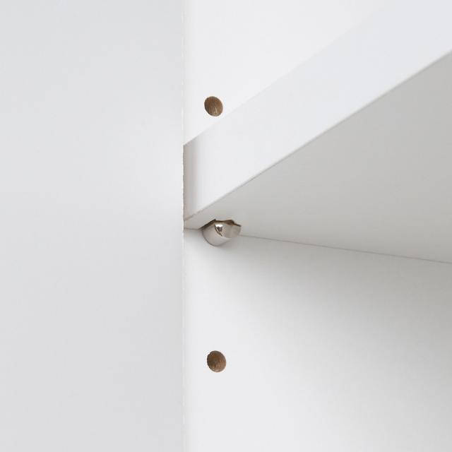 棚板はダボでしっかりと支えます。 可動棚板は3cmピッチ3段階で可動できます。