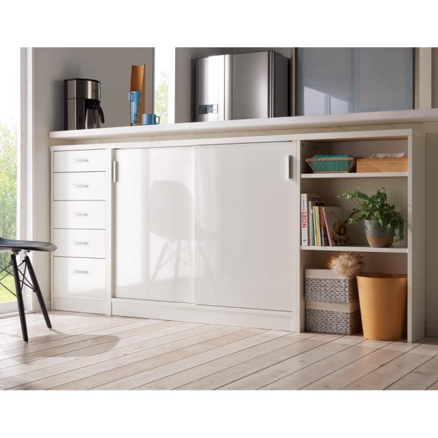 使用例:奥行23高さ100cmタイプ 左から引き出し、収納庫(幅120cm)、オープンラック