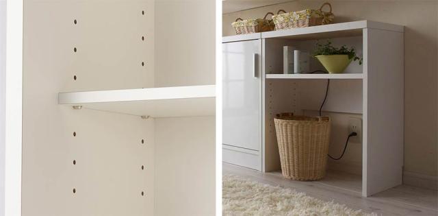 可動収納棚板は3cm間隔で調節が可能です。