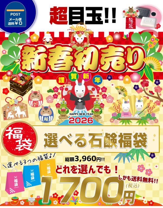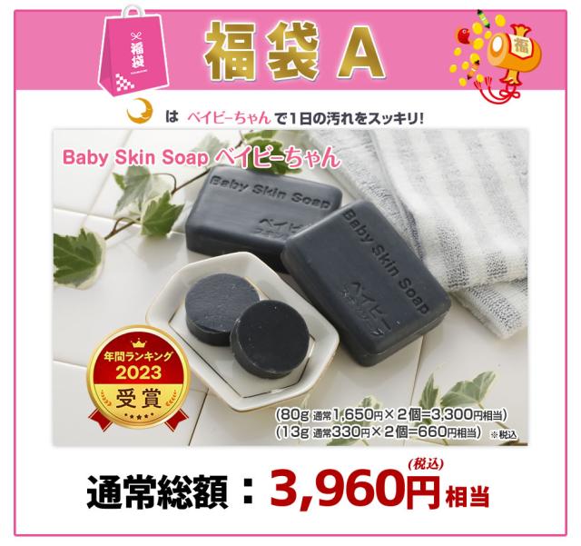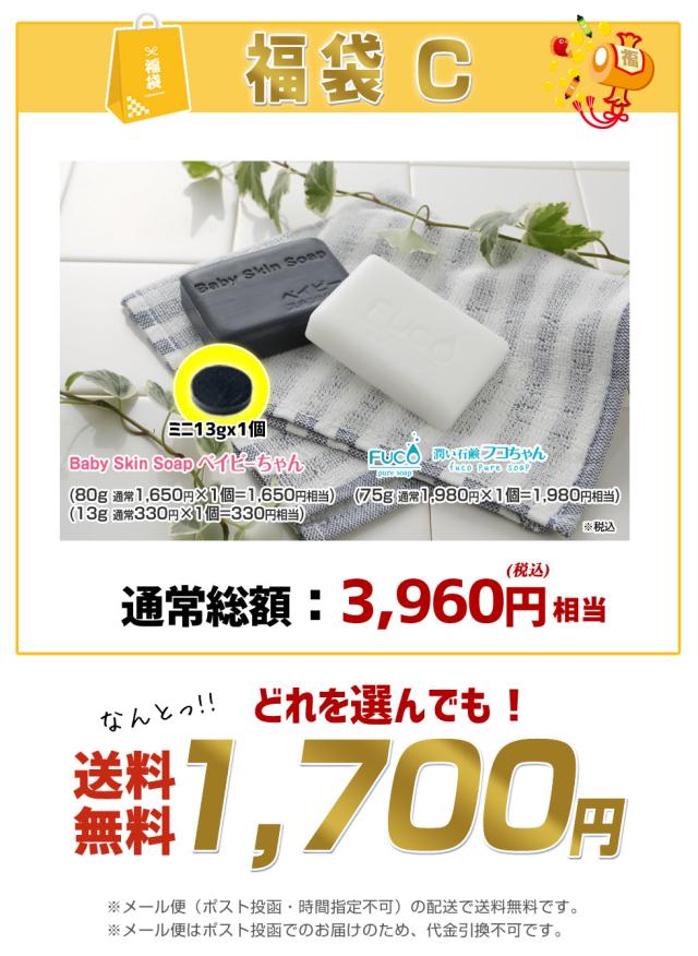 \2026年初売福袋/選べる石鹸福袋♪超お得!通常総額3,960円相当⇒1,700円福袋!【メール便】送料無料「2023年間ランキング受賞:ベイビーちゃん+3部門で1位獲得:フコちゃん」の組み合わせが選べる福袋!ベイビースキンソープ♪洗顔 石鹸 石けん 敏感肌 福袋
