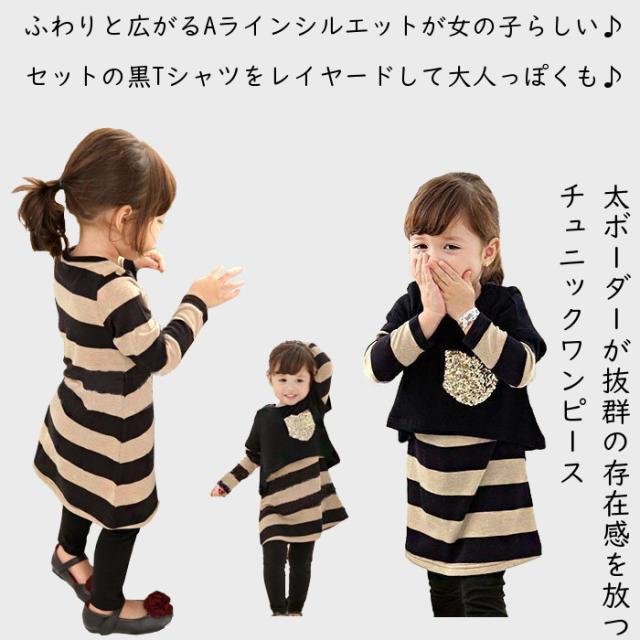 【2点セット】子供服 女の子 チュニック 子供 2点セット ボーダーチュニック Tシャツ 子供服 カジュアル 子ども チュニック