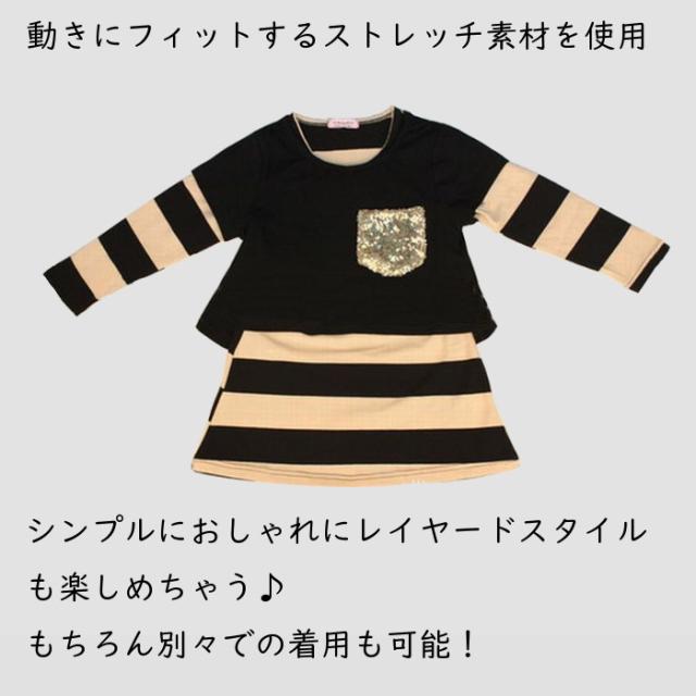キラキラ♪スパンコールポケット付きTシャツ&ボーダー長袖チュニック
