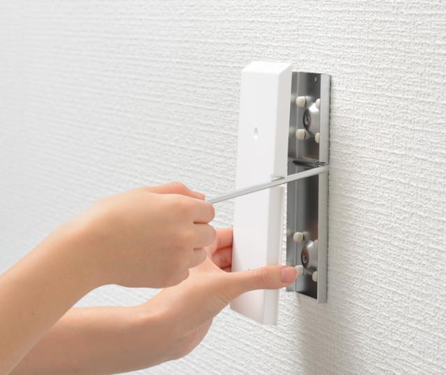 取付金具本体/L字フック:鉄(クロムめっき)、カバー:ABS樹脂、取付ピース:ABS樹脂、キャップ:ポリエチレン、ピン:ステンレス鋼