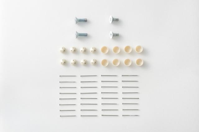 セット内容:カバー×1、取り付け金具本体×1、短いネジ(頭白)×2、ピン×32(予備8本含む)、取付ピース×8、キャップ×8、長いネジ×2