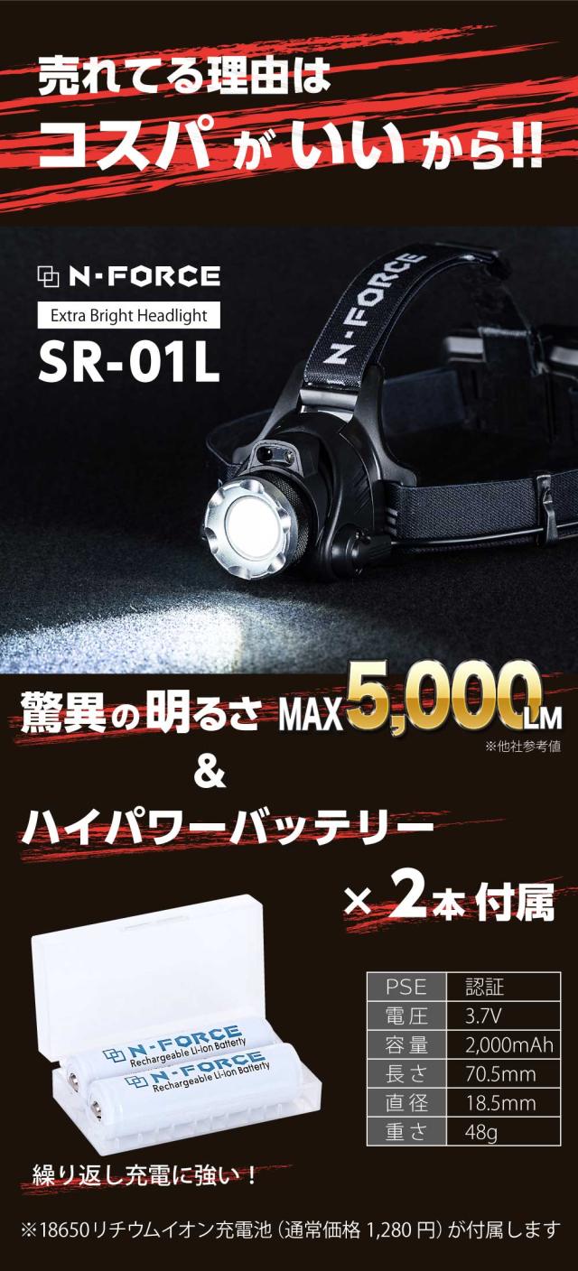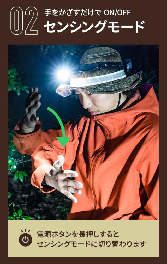 【5,000lm】ヘッドライト 充電式 キャンプ キャンプ用 ソロキャンプ アウトドア LED センサー点灯 電池付属 SR-01L