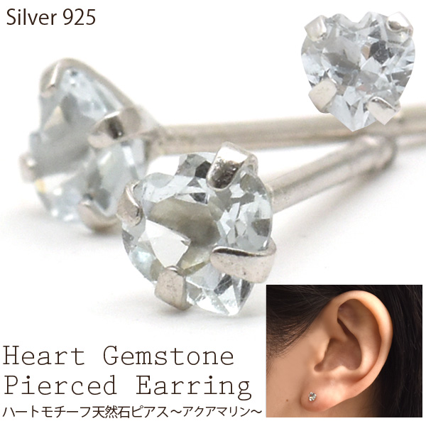 片耳売り シルバー925 4mm 誕生石 ハートピアス 3月 誕生石 アクアマリン 天然石ピアス