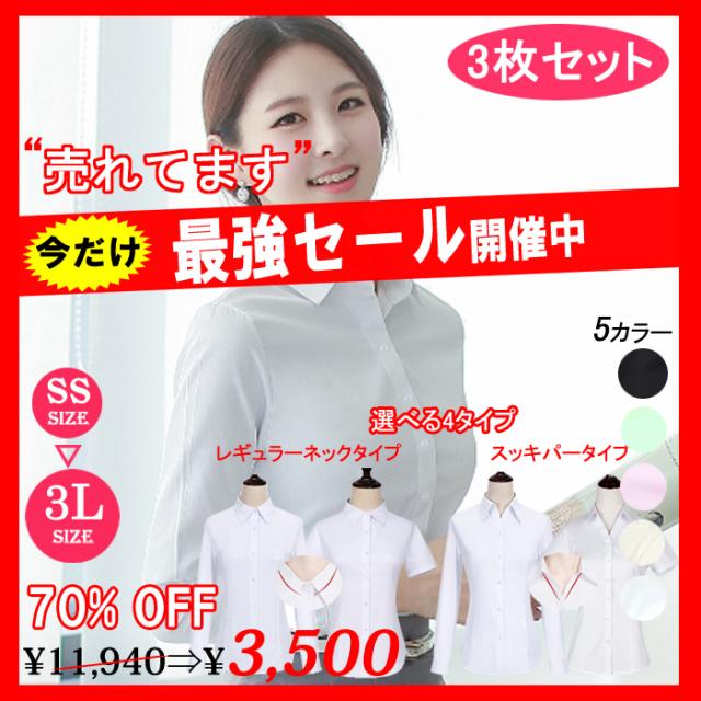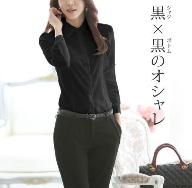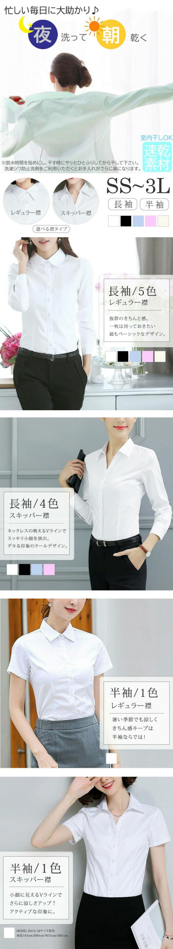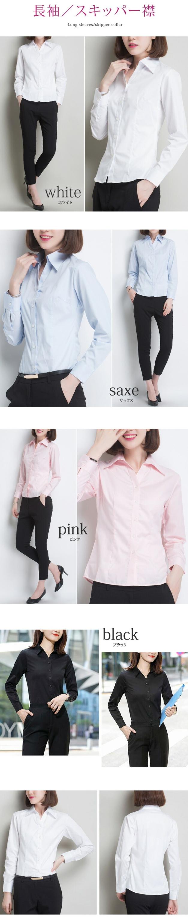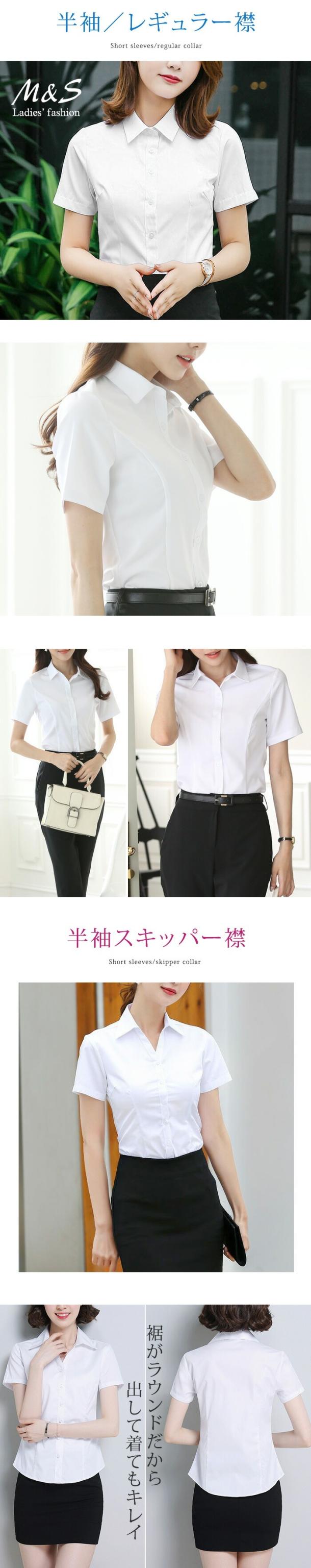 レディースシャツ ブラウス yシャツ ワイシャツ 長袖 半袖 制服 事務服 フォーマル 白 黒 ホワイト ブラック ノーアイロン メール便送料無料