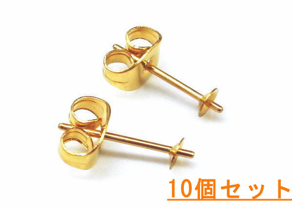 【10セット】ステンレス製ピアス軸 キャッチ付 *金*