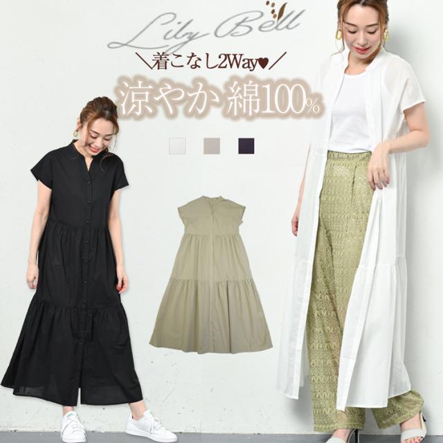 ティアードワンピース 半袖 シャツワンピース ロングワンピース レディース コットンワンピース フレアワンピース 切り替えワンピース 夏 コットン シャツ ブラウス ワンピース 前開き ティアード フレンチ袖 ロング 切り替え 黒 白 大人可愛いワンピース カーディガン