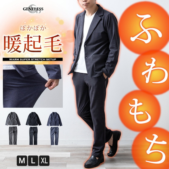 セットアップ メンズ テーラードジャケット 暖かい イージーパンツ 起毛 上下セット ストレッチ テーラード ジャケット 秋 ウエストゴム 柔らかい ブレザー ブルゾン