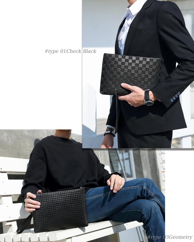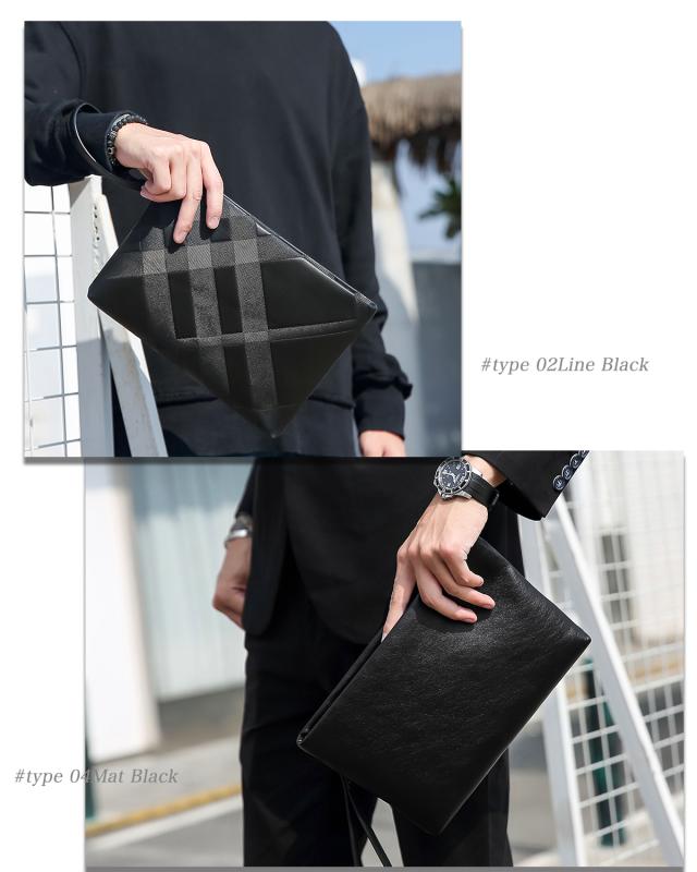 【デザイン】ブラックを基調にしたシンプル且つおしゃれなデザインは、カジュアル、ビジネス、フォーマル様々なシーンでスタイリッシュにファッションを仕上げてくれるクラッチバッグです。