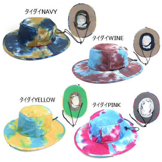帽子 サファリハット 撥水 総柄 夏フェス 登山用 アウトドア用 レインハット UV帽子 レンズ レディース タイダイ 送料無料