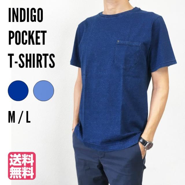 ポケットTシャツ インディゴ染 天竺 ポケシャツ メンズ Tシャツ