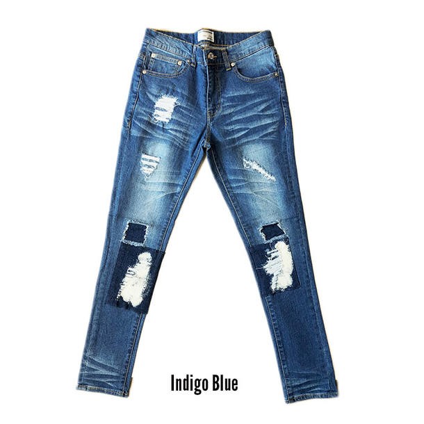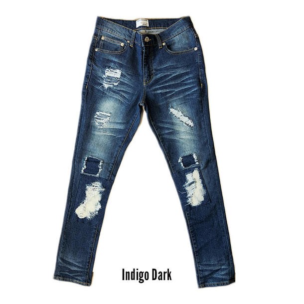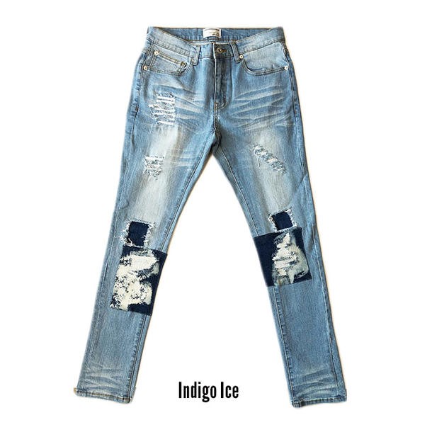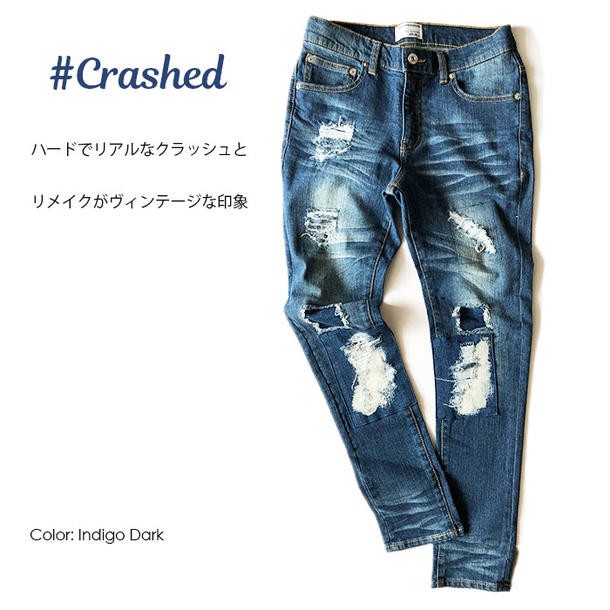送料無料 クラッシュ スキニー ストレッチ デニム ジーンズ メンズ ダメージ クラッシュ ブリーチ パッチワーク