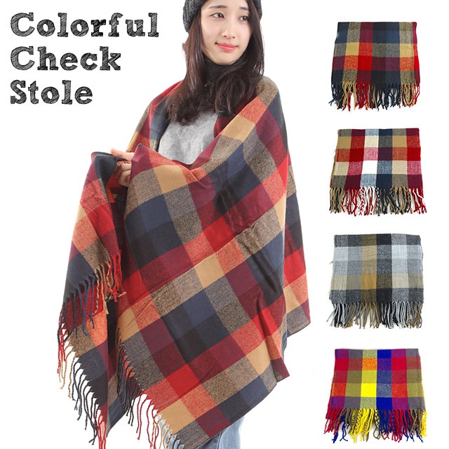 ストール リバーシブル カラフルチェック柄 マフラー ウールタッチ アクリル チェック 大判ストール 大判 厚手 ひざ掛け 秋冬 メンズ レ