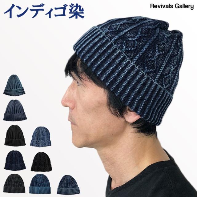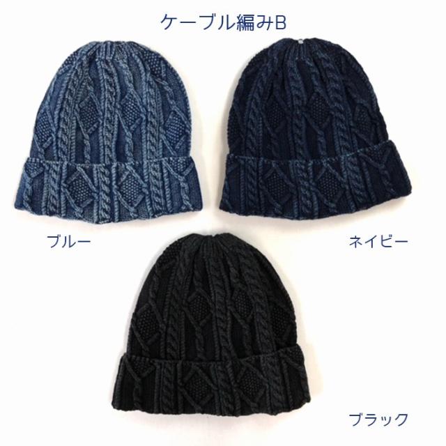 秋冬新作 インディゴ染 ニット帽 ケーブル編み ニットワッチ レディース 帽子 メンズ 送料無料