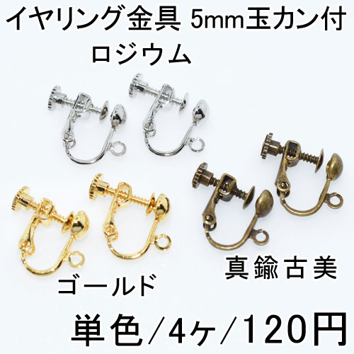 イヤリング金具 6mm玉カン付 1ペア(2個入)