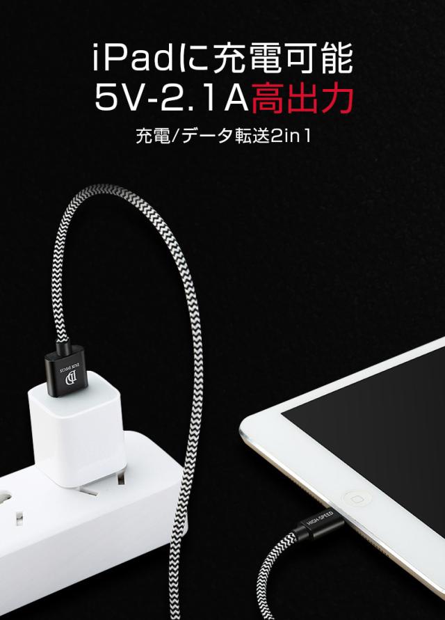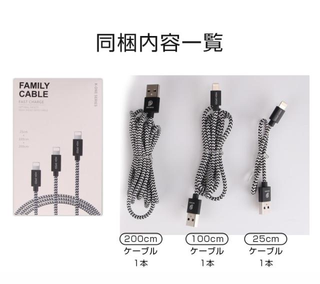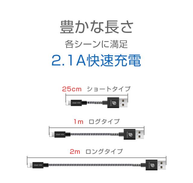 すべてのiPhone/iPadに対応!2.4A 急速充電対応 0.25m+1m+2m充電ケーブル
