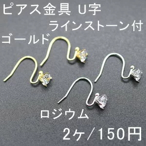 ピアス金具 U字 ラインストーン付 14×16mm 1ペア(2個入)