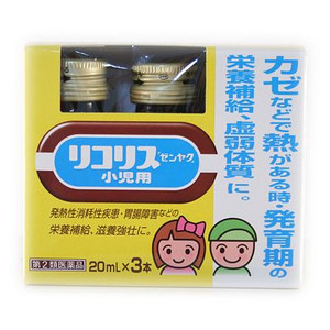 ●リコリス「ゼンヤク」小児用は、甘い生薬・カンゾウ(甘草)エキスを配合した、のみやすい味のお子さま用内服液剤です。 かぜなどの発熱性消耗性疾患や胃腸障害・病中病後などの栄養補給に適しています。 ●カフェインは配合しておりませんので、お休み前でも服用いただけます。