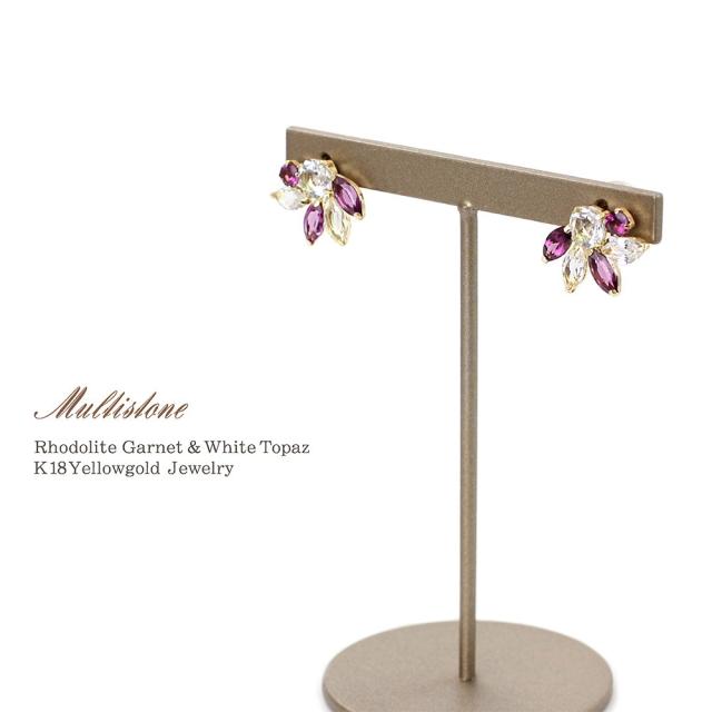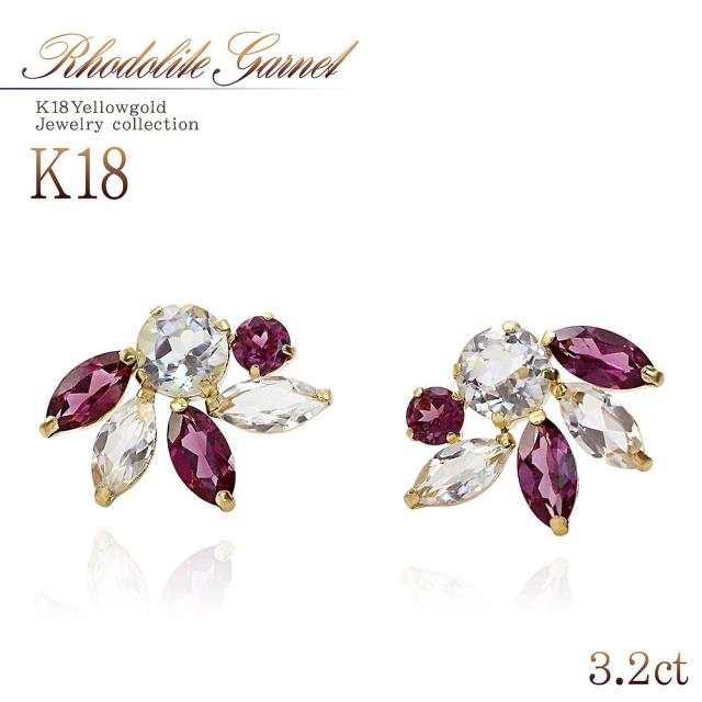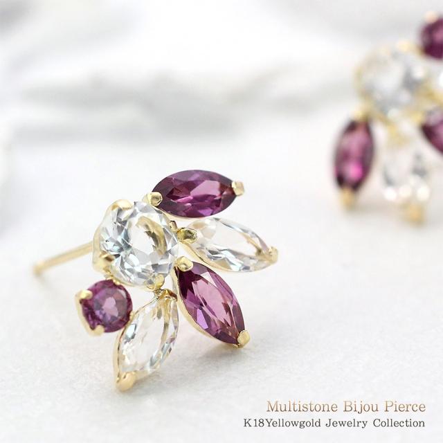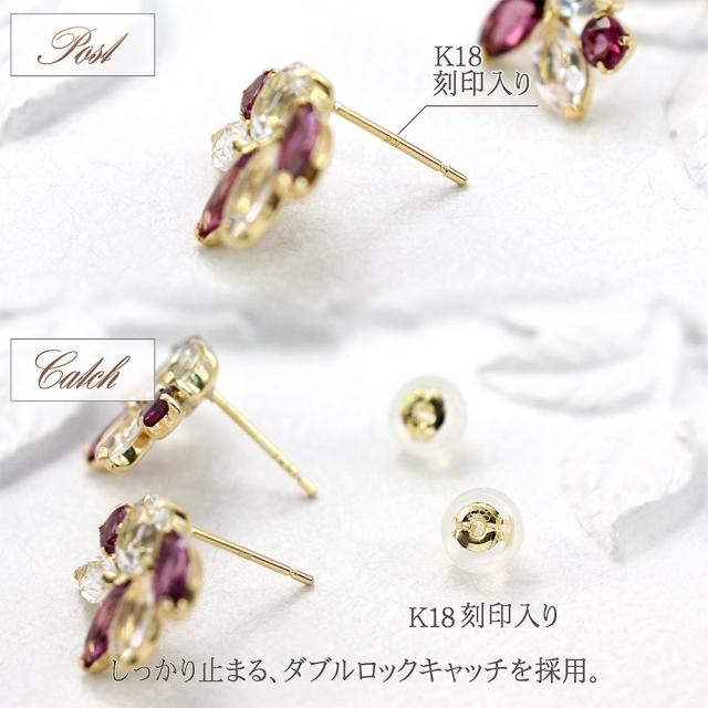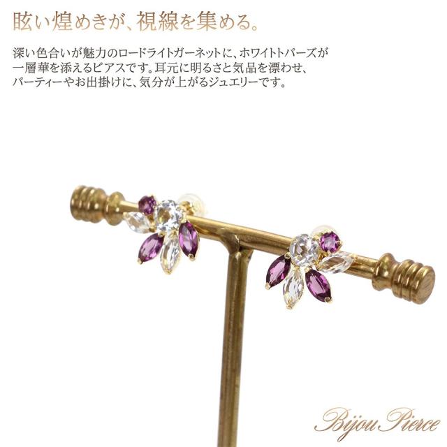 18金ピアス ロードライトガーネット ホワイトトパーズ ピアス 18k ゴールド アクセサリー レディース ジュエリー 二次会 ビジュー 1月 誕生石 かわいい ホワイトデー お返し 記念日 誕生日 お祝い ギフト 贈り物 女性 彼女 妻 嫁 奥さん 娘 20代 30代 40代 おしゃれ 結婚式