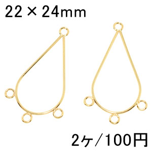 フープピアス チャーム 4カン付しずく ゴールド 22×24mm(2ヶ)