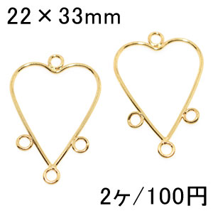 フープピアス チャーム 4カン付ハート ゴールド 22×33mm(2ヶ)