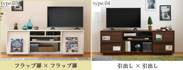 左右の収納をデザインや用途によって選べるハイタイプテレビ台