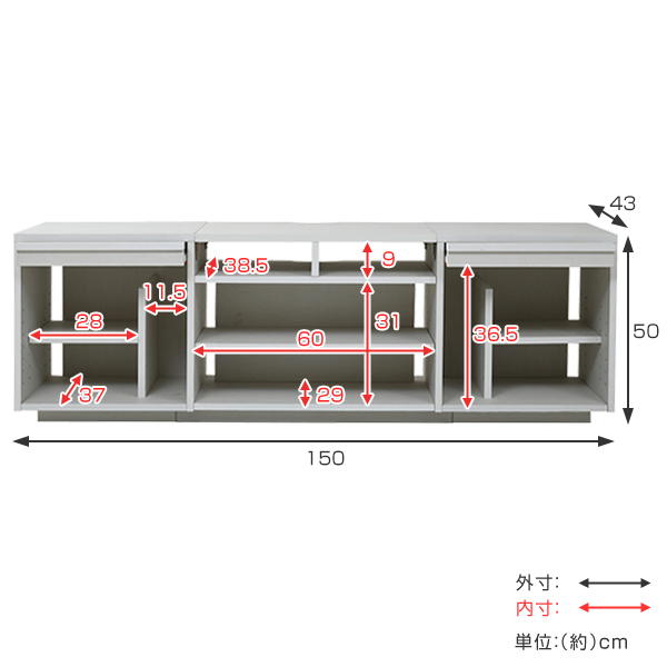 【サイズ】約幅150×奥行43×高さ50cm