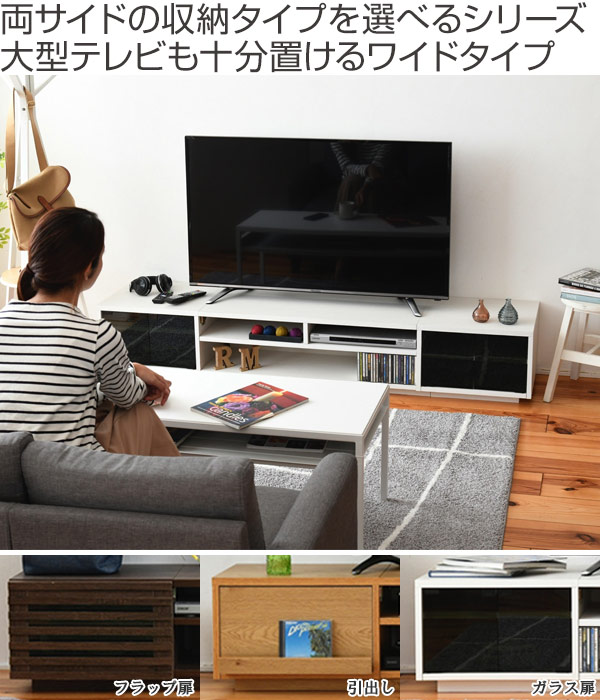 左右の収納をデザインや用途によって選べるロータイプテレビ台