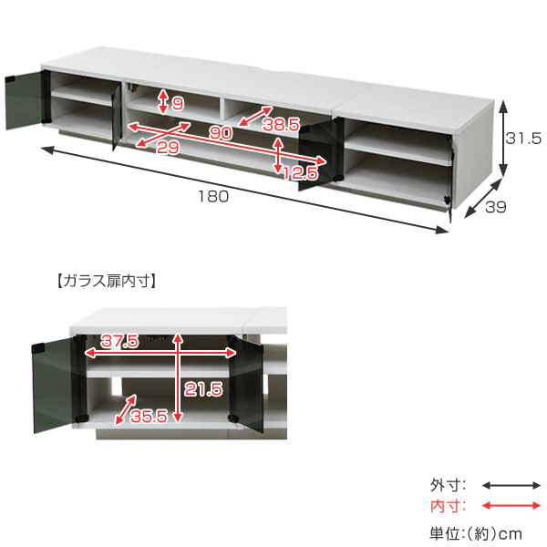 【サイズ】約幅180×奥行39×高さ31.5cm