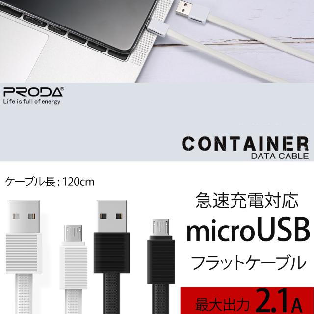 REMAX スマホ microUSB 急速充電 転送ケーブル リマックス 2.1A 1.2m PRODA Container ブラック PD-B03m フラットケーブル 耐久性 長持ち