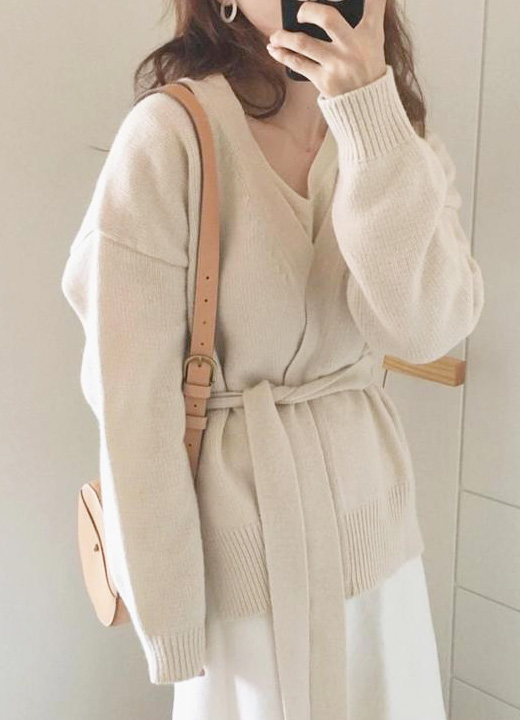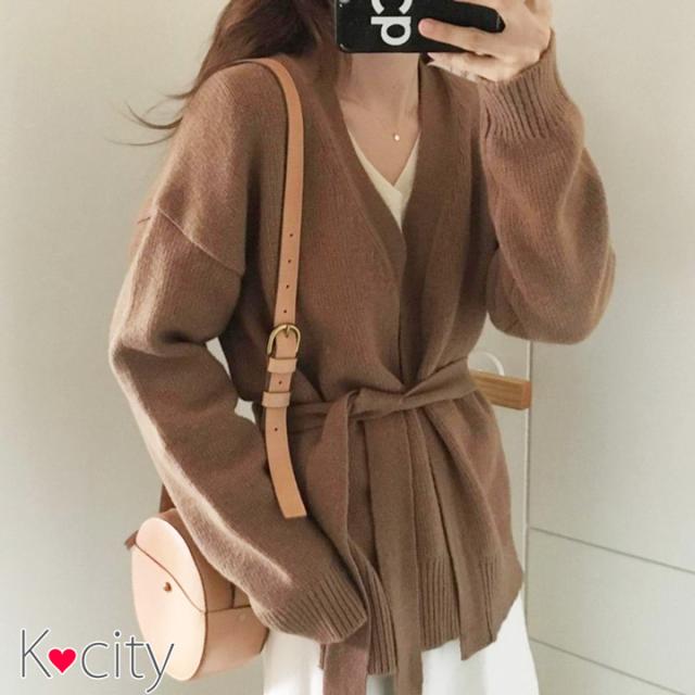 カーディガン カーデ ニット アウター セーター あったか ベルト付き