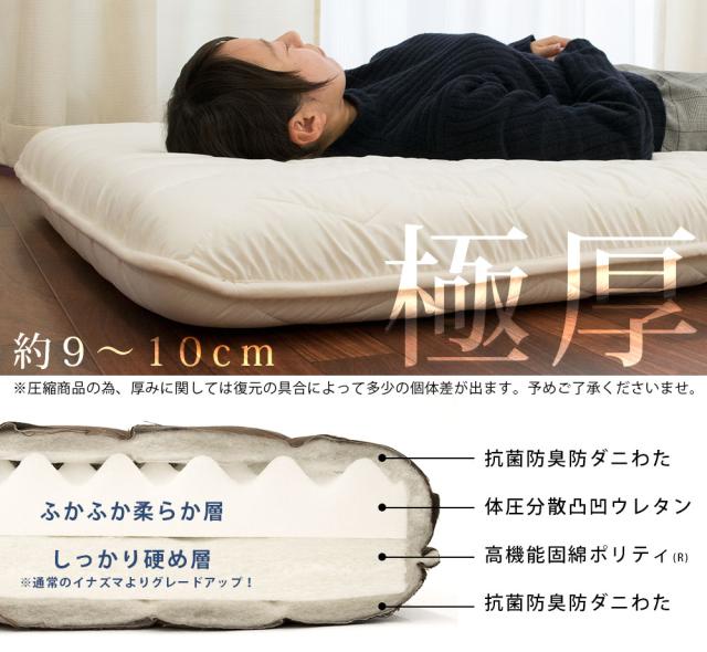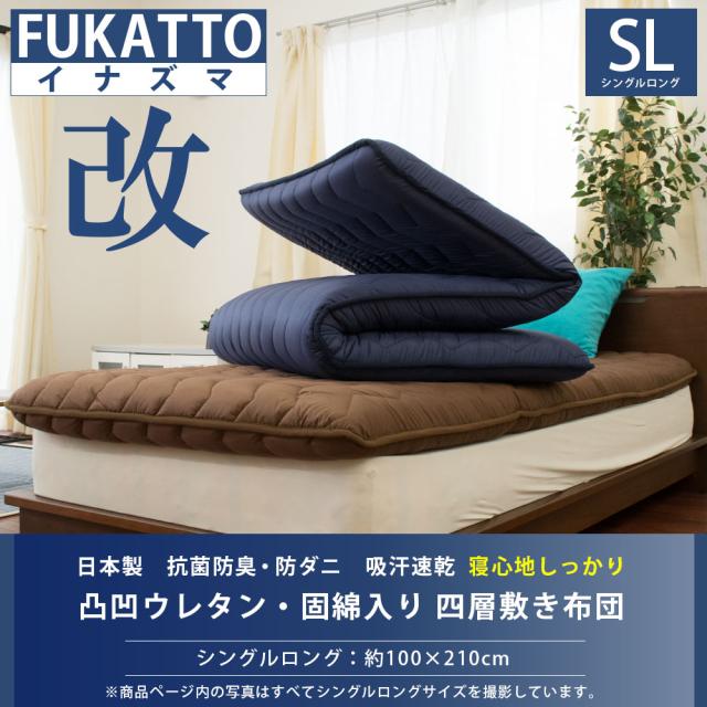 敷き布団 シングル 「FUKATTO イナズマ改」 四層敷き布団 凸凹ウレタン 固綿 入り 抗菌防臭 防ダニ 吸汗発散 日本製 極厚 シングルロング ボリューム 凸凹 プロファイル ウレタン イナズマ改 当社限定品