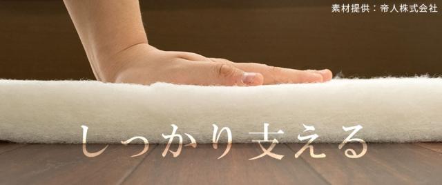 帝人の高機能固綿ポリティ(R)を採用することで、 フローリングに敷いても底付しにくい硬さになりました。