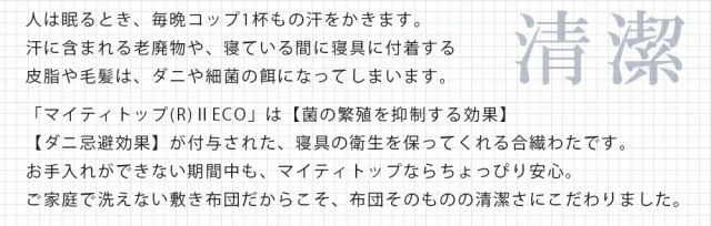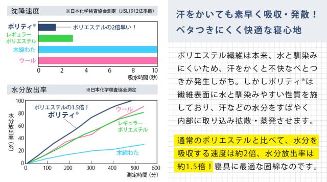 | 仕様 | マイティトップ(抗菌防臭防ダニわた) ポリティ(吸汗速乾固綿)使用 |