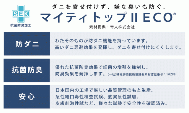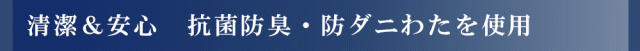 抗菌防臭・防ダニわたを使った清潔仕様。さらに安心の日本製・高品質。