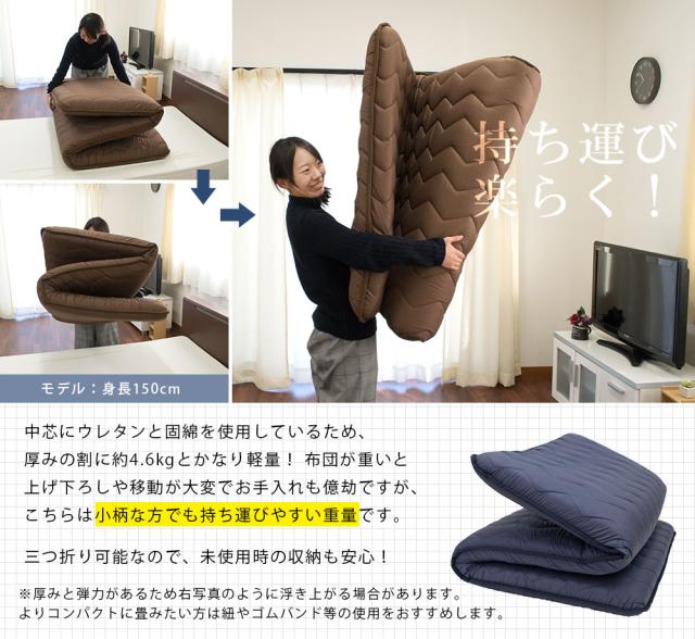 - 万年床には良いかと思います。厚さ固さがあるため、寝心地はよろしいですが、たたんで布団を押し入れに入れることができません。残念です。