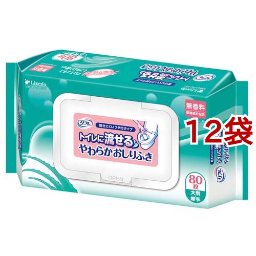 リフレ トイレに流せる やわらかおしりふき フタ付【リブドゥ】(80枚入*12コセット)[おしりふき]