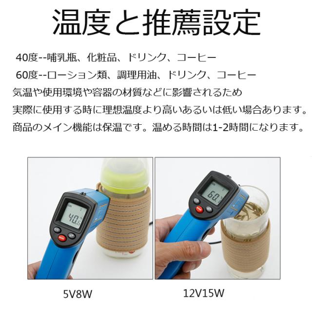※12V/15Wのモデルは60℃まで温度があがりますので、耐熱性のある容器でご使用下さい