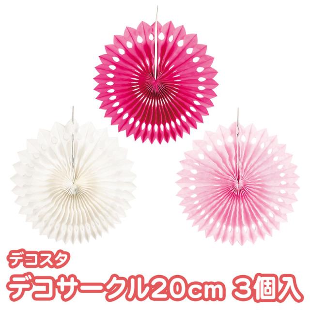 デコスタ デコサークル 20cm 3色 (ピンク・ライトピンク・ホワイト) ノーブランド品 デコレーション パーティーグッズ 装飾品 バースデーパーティー用品 壁掛け 天井飾り ペーパー製 おしゃれ
