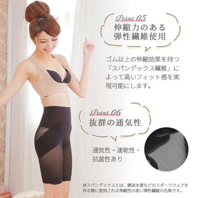 クロス型の裏打ちがヒップラインに沿って、ヒップを下から持ち上げ、骨盤もしっかりサポート! レディース