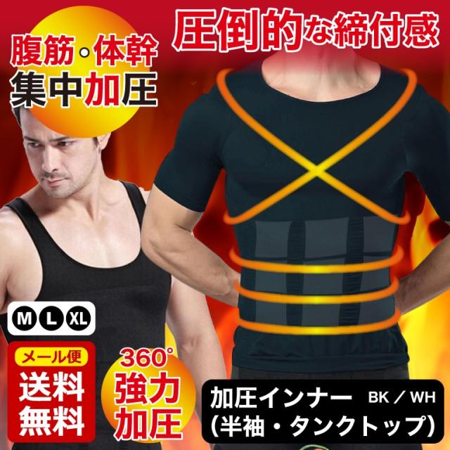 加圧シャツ ダイエット 加圧インナー Tシャツ 半袖 トップス メンズ タンクトップ ノースリーブ 着圧 補正下着 猫背 姿勢矯正 送料無料