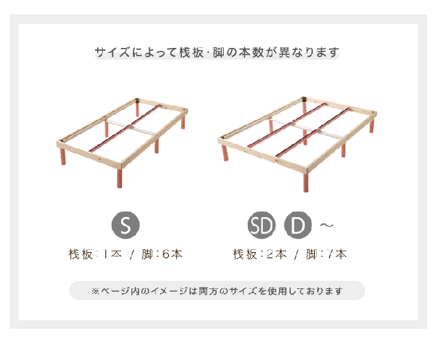 | 備考 | 【ベッド:ベトナム製、マットレス:中国製】【ベッド:組立品】 ※配送は全て宅配便(1人)での玄関渡しとなります。大型商品や重量商品、エレベーターの無い2階以上にお住まいのお客様は、玄関口までの搬入のお手伝いをお願いしております事をご了承ください。 ※すのこの上に立つ場合はさん木の上に足をかけるなど強度の弱い部分に体重がかからないようにご注意ください。 ※ロースタイルでの使用時は、床傷が付く恐れがあるため中央裏面の連結金具は付けないでください。 ※商品の寸法はロット・測り方によって、ご使用に差し支えのない程度の多少の誤差が生じる場合がございます。予めご了承下さい。 ※すのこに黒っぽい斑点が多少ありますが、小さな節やマツヤニによる染みなどの場合がございます。使用上問題はございませんので、予めご了承ください。 ※すのこに青っぽい染みのようなものがある場合がございますが、松系統に良く見られるものであり、カビではございません。人体・強度に影響はございませんので、予めご了承ください。 ※天然木特有の臭いがある場合がございます。臭いが気になる場合は、開封時・組立時に換気を行なってください。 ※天然木を使用しておりますので、木目や色目により多少の色ムラがある場合がございます。予めご了承ください。 ※強度を維持する為にすのこに反り加工を施しております。湿度の関係でそりが強くなる場合がございますが、使用上問題はございませんので、予めご了承ください。 | |