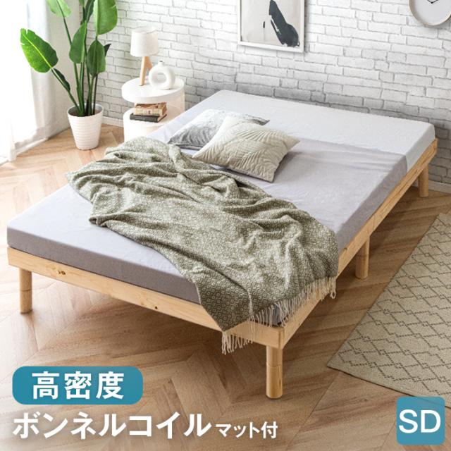 【10時〜P5%還元】 ベッド マットレス付き セミダブル 3段階高さ調節 天然木 すのこベッド セミダブルベッド 木製ベッド ボンネルコイルマットレス マットレスセット 北欧 ベッドマットレス コイルマットレス ベッドフレーム ローベッド ベッド 木製