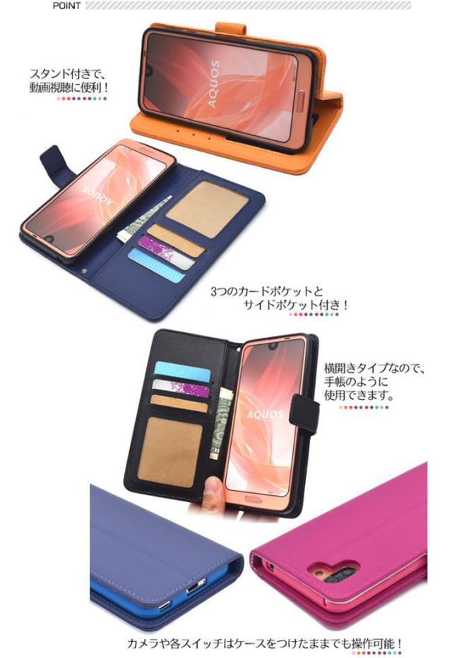 残りわずか AQUOSR2 SH-03K au SHV42 706SH 手帳型 ケース カバー アクオスアール2 レザー カード収納 3枚 ポケット 動画スタンド ストラップ 対応 おしゃれ かわいい 人気 メール便送料無料