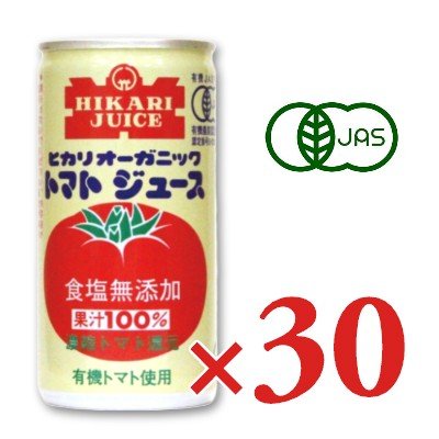 ヒカリ オーガニックトマトジュース 食塩無添加 190g缶 × 30本 光食品 沖縄配送不可