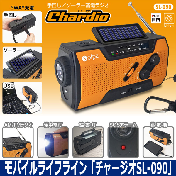 モバイルライフライン「チャージオSL-090」(手回しソーラー蓄電ラジオ ソーラー充電 蓄電ラジオライト LEDライト搭載 警報 照射 緊急)